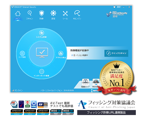 KINGSOFT Internet Security 2017は、ウイルスからパソコンを守り、快適に動作させ、高検出率で、かつ無料のウイルス対策ソフトです。
